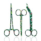 CynaMed Hemostat and Scissors Set (3-Piece) – Suture Removal Scissors, Lister Bandage Scissors, and Hemostatic Forceps (Green Flower)