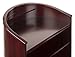 This mobile lecterns w/curved design has a rich red mahogany finish. The curved surface of this lectern is polished. (2) Wheels are located underneath this maitre d' stand making it easily movable by simply tilting and rolling to a new location. The angled top reading platform measures 31"w x 22-3/4"d and gives plenty of room for keeping your papers and presentation materials organized. The open back design of this lectern is such that easy access is granted to the storage shelves inside. The interior dimensions are 30-3/4"w x 32-1/2"h x 22-7/8"d. The overall size of this lectern is 32-1/2"w x 47-1/2"h x 24-1/2"d and the weight is 84 lbs.
