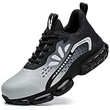Micoklinlin Steel Toe Shoes for Men Lightweight Breathable Work Sneakers Anti-Smash and Anti-Puncture Safety Shoes Fashion Non-Slip Hiking Shoes Grey
