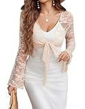 Avidlove Womens Crop Cardigan Lace Shrug Bell Sleeve Tie Front Top Y2K Sexy Sheer Bolero Going Out Outfits S-XXL Nude