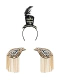 CHICTRY Drum Band Feather Hat Toy Soldier Headband and Tassel Epaulet for Circus Stage Performance Gold Black One Size