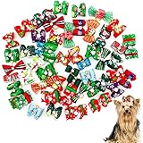 PET SHOW 50pcs Christmas Dog Hair Bows with Rubber Bands Bulk for Small Medium Dogs Xmas Holiday Puppies Cats Kittens Rabbits Topknot Grooming Costumes Hair Accessories