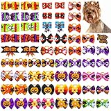 Senniea 60PCS Halloween Pet Hair Bows, Rhinestones, Pumpkins, Skulls, Bats, Ghosts, Dog Hair Bows with Rubber Bands, Halloween Puppy Bows (Halloween)