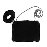 surell - Real Rex Rabbit Fur Wristlet Bag - Fuzzy Clutch Purse w Long Strap - Fluffy Soft Wallet Bag w Zipper Closure - Luxurious Fashion Purse Gift - Chic Modern Pocketbook - (Black)