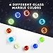 - GLOWING MARBLES - This marble pack contains 4 light blue, 4 dark blue, 5 yellow, 4 green, 4 orange, and 4 red glass marbles that glow like galaxies in the dark