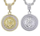 MAXBLING81 Iced Simulated Diamond 14K Gold, Silver Plated Lion Head Medal Pendant & 4mm 24" Rope Chain Hip Hop Jewelry Fashion Necklace Gift Set (SILVER)
