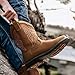 - [Comfortable & User-friendly]: Our mens work boots steel toe with comfortable and flexible footbed system absorbs shocks and returns energy to reduce muscle fatigue in your feet and legs. The removable, rich-rebounded insole with Gel padding on the heel provides all-day comfort. Plus, the moisture-wicking mesh lining ensuring your feet stay comfortably dry when working in hot season. The mens cowboy boots square toe silhouette and pull tabs on both sides make for easy on/off.