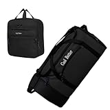 55L Foldable Rolling Duffel Bag with 2 Wheels, Large Durable Travel Duffle Bag Heavy Duty Overnight Weekender Bag with Shoulder Strap,Black