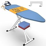 Xabitat Full Size Ironing Board 57" X 15" with Wall Mount Hanger, Full Metal Construction Iron Board, Built in Iron Caddy, Heat & Scorch Resistant Fabric, Cord Holder (Blue, 15 x 57 Inches)