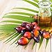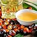 Made of clear plastic Filled with a rich, reddish-orange oil, topped with a red cap Front label is vibrant and informative Green banner reinforces its natural quality Label includes images of palm fruits