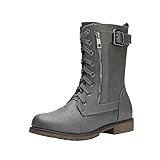 DREAM PAIRS Women's Mid Calf Built-in Wallet Pocket Lace up Military Combat Boots,Size 6.5,All Grey,MISSION