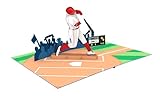 Baseball - 3D Pop Up Greeting Card For All Occasions - Love, Birthday, Christmas, Sports, Congrats - Removable Personalized Message Note - Thick Envelope, Fold Flat - 5x7 Inch (Batter Red Uniform)