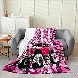 Off-Road Vehicle Kids Flannel Blanket All Seasons,Adventure Sports Pink Racing Car Bed Blanket for Kawaii Home Decor,American Flag Camouflage Graffiti Blanket for Sofa Couch,40"x50"