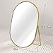 Numjeg Vanity Desk Table Mirror Oval Makeup Mirror 90°Adjustable Rotation Golden Metal Framed Standing Mirrors Room Decor for Living Room,Bedroom,Tabletop,Bathroom
