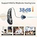 - 【Powerful 38dB Gain with Whistle-Free Design】 Hear Soft Sounds Clearly Without Annoying Whistles. Our hearing aids provide a powerful 38dB of sound gain, effectively amplifying even the softest voices and sounds. This high gain is achieved without the usual whistling, thanks to the combination of the RIC design (which physically minimizes feedback) and advanced Feedback Cancellation technology (which digitally eliminates any remaining whistle).