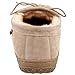 Designed with built up and tapered toe for wiggle in the plush sheepskin. Hand stitched, Cinch adjustable tie, and cushioned midsole. Features removable/replaceable insole.