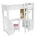 - PRINCESS DOLL BUNK DESK: Features a classic white finish with headboard, footboard, desk, closet area, mirror, and a ladder connecting the bed and desk to bring your child functional fun