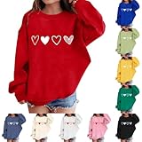 Girls Valentines Day Shirt Oversized Casual Heart Printed Crewneck Sweatshirts 2026 Fashion Preppy (C-Red, 7-8 Years)