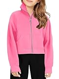 Meikulo Girls Zip Up Sweatshirt Kids Fashion Stand Collar Fleece Lined Jacket with Pockets 7-14 Years Pink
