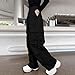 Parachute Cargo Pants for Girls Elastic High Waist Trousers Fashion Y2k Loose Fit Streetwear Jogger Pant with Pockets Black