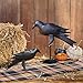 Folk art style primitive iron crow. Bird only, decoration shown not included. The crows are made of metal with a distressed black finish for a vintage look; hollow construction. Standing Crow: 6.5" high and 9" wide