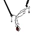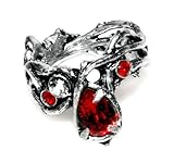 Wildly romantic authentic Alchemy Gothic necklace featuring a blood-red faceted crystal 19mm by 13mm, set in a thorny tangle of fine lead-free English pewter approximately 3" wide and 4" long. Two more blood-red teardrop crystals hang from the ends of this unusual off-center design. The necklace is finished by long doubled black satin ribbons which can be tied to make any length from a choker up to a 24" necklace.<BR><BR> Customer Testimonials: "I received both necklaces over the weekend and they are both AWESOME! The Queen of the Night necklace is gorgeous! I can't wait to wear it!!! The Passion Necklace is stunning! Definitely perfect for concert-wear! And of course, I had to order a few more things..." - Kim S., Kenmore NY<BR><BR>"I just wanted to say that I ordered the Passion Red Crystal Ring and the Passion Alchemy Gothic Necklace and it is the most beautiful pieces of jewelry ever. The workmanship is stunning and I will definitely spread the word about your website. I am a very satisfied customer. I love your website and will be definitely ordering again. Also thanks for the speedy delivery, I ordered on Friday and received my package the next day and the packaging of the items is absolutely wonderful. Thank you so much." - Janine D., Brooklyn NY