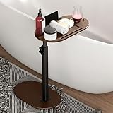 Yumkfoi Bamboo Bathtub Tray Table with Adjustable Height, Freestanding Bath Caddy Side Table for Tub Against Wall, Tub Shelf with Wine Glass Phone Holder, Functional Tray - Patent Protected (Brown)