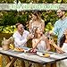 Easy to Clean:Our matching fitted picnic tablecloth with elastic are made of waterproof fabric, durable, waterproof and sunproof, easy to clean, gently wipe to remove stains, keep the table and stools clean and reusable
