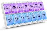 Sukuos AM PM Weekly 7 Day Pill Organizer, 2 Times A Day Pill Box with Arthritis Friendly Push Button, Medicine Cases for Vitamin/Fish Oil/Supplements, Easy to Clean (Purple&Blue)