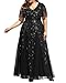 【Features】Elevate your evening with our floor-length tulle prom dress. Featuring exquisite sequin embroidery, a double V-neck, and short sheer petal sleeves, this fully lined gown offers timeless elegance. Note: No built-in bra and no stretch.