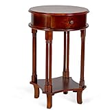 All Things Cedar Classic Accents HR23 Round Accent Table | Cherry Wood Console Table | Birch Veneer, Solid Wood Legs, Interior Shelf & Drawer | Elegant Wooden Entry Table | 18x18x29