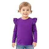 Magic Park 12M-14Y Baby Girl Blouse Toddler Short Long Ruffle T-Shirts Kids Girl Solid Color Tee Casual Tops for Girls (Long Dark Purple, 5-6 Years)