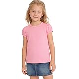 LYSMuch 1-14Y Girls Short Sleeve Shirt Toddler Round Neck T-Shirt Baby Puff Tops Casual Loose Blouse(Pink,3-4Years)