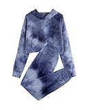Meikulo Kids 2 Piece Outfits Tracksuits Workout Tops Tie Dye Sweatsuit Girls Crop Tops Fashion Hoodies Long Sleeve Pullover Hooded Sweatshirts Sweatpants Jogger Pants Dark Blue, 5-6 Years