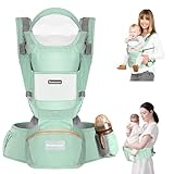 Boobezeen Baby Carrier with Hip Seat, Ergonomic M Position 6-in-1 Baby Carrier Newborns to Toddlers, Adjustable Baby Holder Carrier, All Seasons(Green)