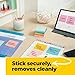 - NO SURFACE DAMAGE: Post-it Notes stick securely and remove cleanly; no tape or tacks are needed, and the adhesive backing of these reusable sticky notes allows for easy repositioning