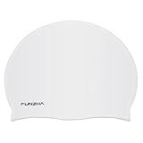 Funzhan High Elasticity Swim Cap Waterproof Non-Slip Swimming Hat for All Haircut Long Short Curly Hair Comfortable Durable Silicone (White)
