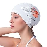 COPOZZ Women‘s Swim Cap for All Hair - Large, Comfortable Silicone Swimming Cap, Waterproof Design for Long, Short, Thick & Curly Hair | Secure & Comfortable Fit (Rose-12yrs+)