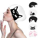 Large Swim Cap for Women Men, Swimming Caps for Long Hair Adults Youths,Silicone Swim Hats Bathing Caps to Keep Hair Dry (Black Cat)