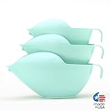 Introducing the Pourfect line of products- the only complete mix, measure and pour set available in the market today to help perfect standard baking gadgets. Made entirely in the USA, Pourfect Products address common frustrations and mishaps in the kitchen to make food preparation easier, more accurate and tidier for anyone. The Pourfect Product line will complement any kitchen's decor and KitchenAid appliances. In addition, the entire line is extremely ergonomic and light-weight, making it easier for people with arthritis and carpal tunnel syndrome to grip them. The Pourfect measuring cups and spoons feature calibrated measurements and bold text in English, Metric and Braille. Each has a matte finish, comfort grip with thumb depression, a polished bowl for easy release, and a dripless spout with a fine edge that assures no drips. The 6 largest cups have a rubber non-slip ring to prevent slipping on a counter surface. This 9 piece measuring cup set in ice blue features the following cup sizes: 1/8, 1/4, 1/3, 1/2, 2/3, 3/4, 1 cup, 1-1/2 Cup and 2 Cup. This set stacks to a 3-inch footprint for easy storage in a drawer. All Pourfect Products are dishwasher and microwave safe.