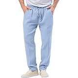 Mens Relaxed Fit Casual Trousers for All Seasons Drawstring Comfort Beach Pant Breathable Walking Pants (Light Blue,4X-Large)