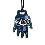 Surly-Ramics All Seeing Eye Ceramic Hand Pendant Necklace In Green and Blue