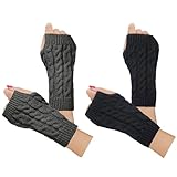 Arm Warmers - 2 Pairs Women's Long Fingerless Gloves Fashion Stretch Knit Arm Sleeves for Women Thumb Hole Stretchy Gloves