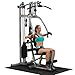 - Multi-function, fully-adjustable, single-stack home gym with ergonomic multi-grip press arm and adjustable leg extension/curl station