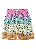GORGLITTER Boy's Star Graphic Shorts Elastic Waist Track Shorts Straight Leg Slant Pocket Shorts Multicolor Cream 11Y