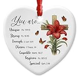CHOANG Christian Ceramic Ornaments Decor Christmas - You are Bible Verse Inspirational Keepsake - Cross Cruxifix with Flower Give Blessing Ornament - Gift for Women, Ladies - Religious Present