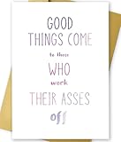 Huameigf Lovely Congratulations Card,Inspirational Work Hard Gifts,Good Things Come to Those Who Work Their Asses Off Card,Funny Promotions Cards for Friends
