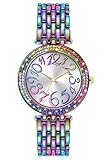 Bisley Women Rainbow Watch Metal Bracelet Iced-Out Face Easy to Read Watch