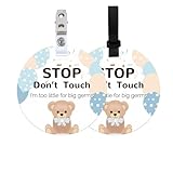 ORIGACH 2 Pack Bear No Touching Baby Signs, Stop Do Not Touch Baby Car Seat Sign Stroller Tags with Hanging Strap and Clip, No Touching Baby Sign for Newborn Baby Boy Girl
