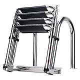 Heavy Duty Pontoon Boat Ladder, 316 Stainless Steel 4 Step Telescoping Folding Large Ladder with Strong Handrails Rear Entry Inboard Swim Ladder All Welded Reinforce Wide Steps
